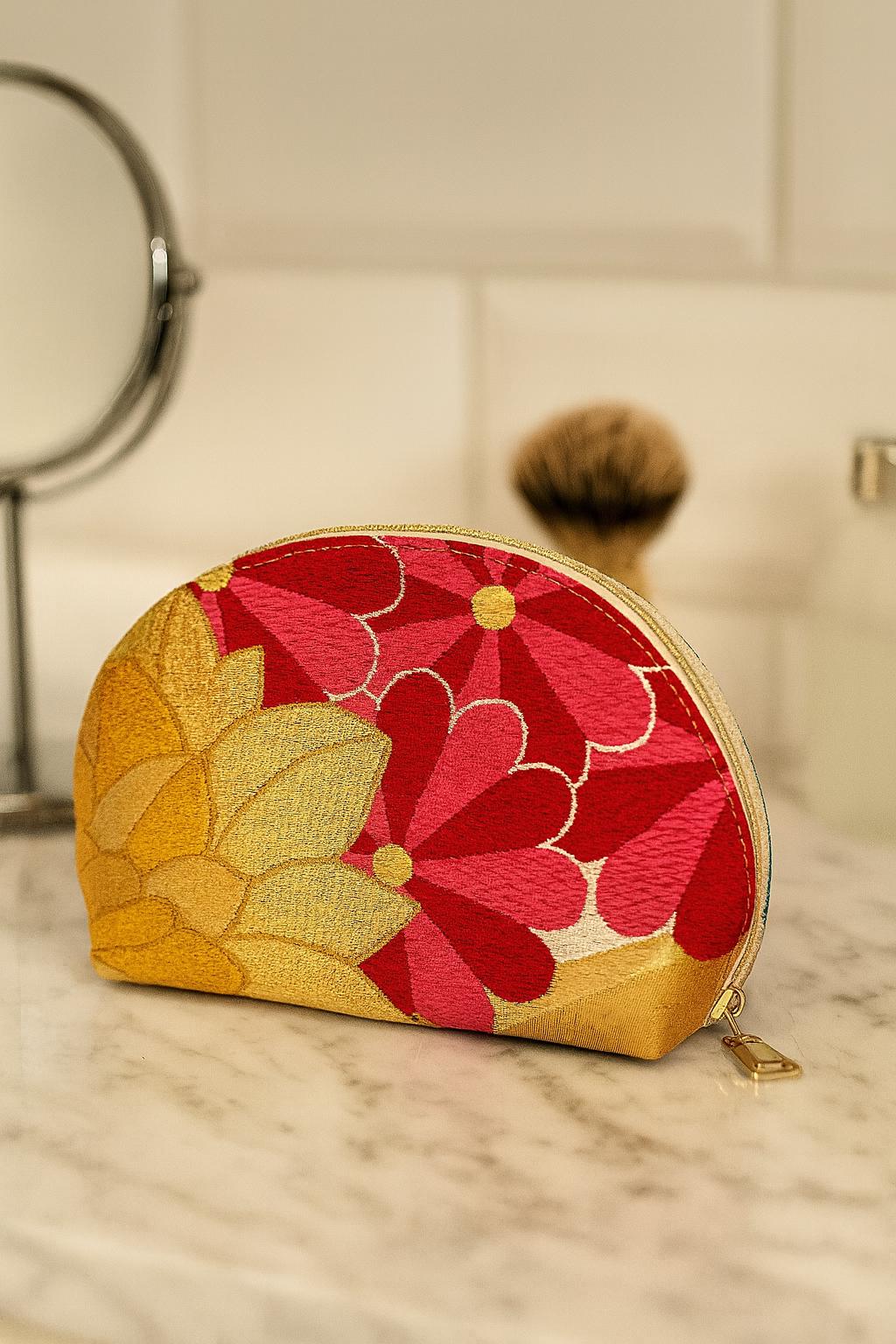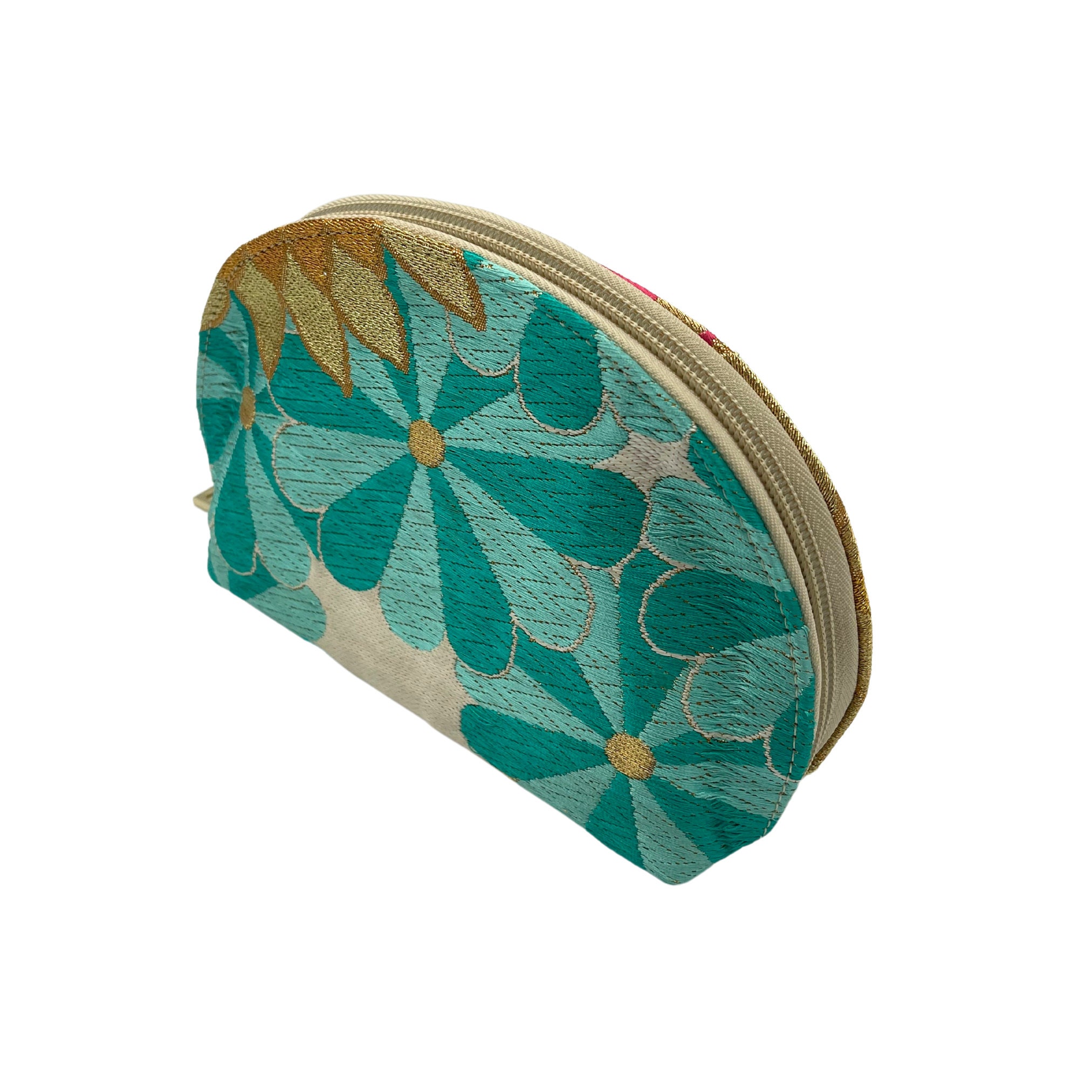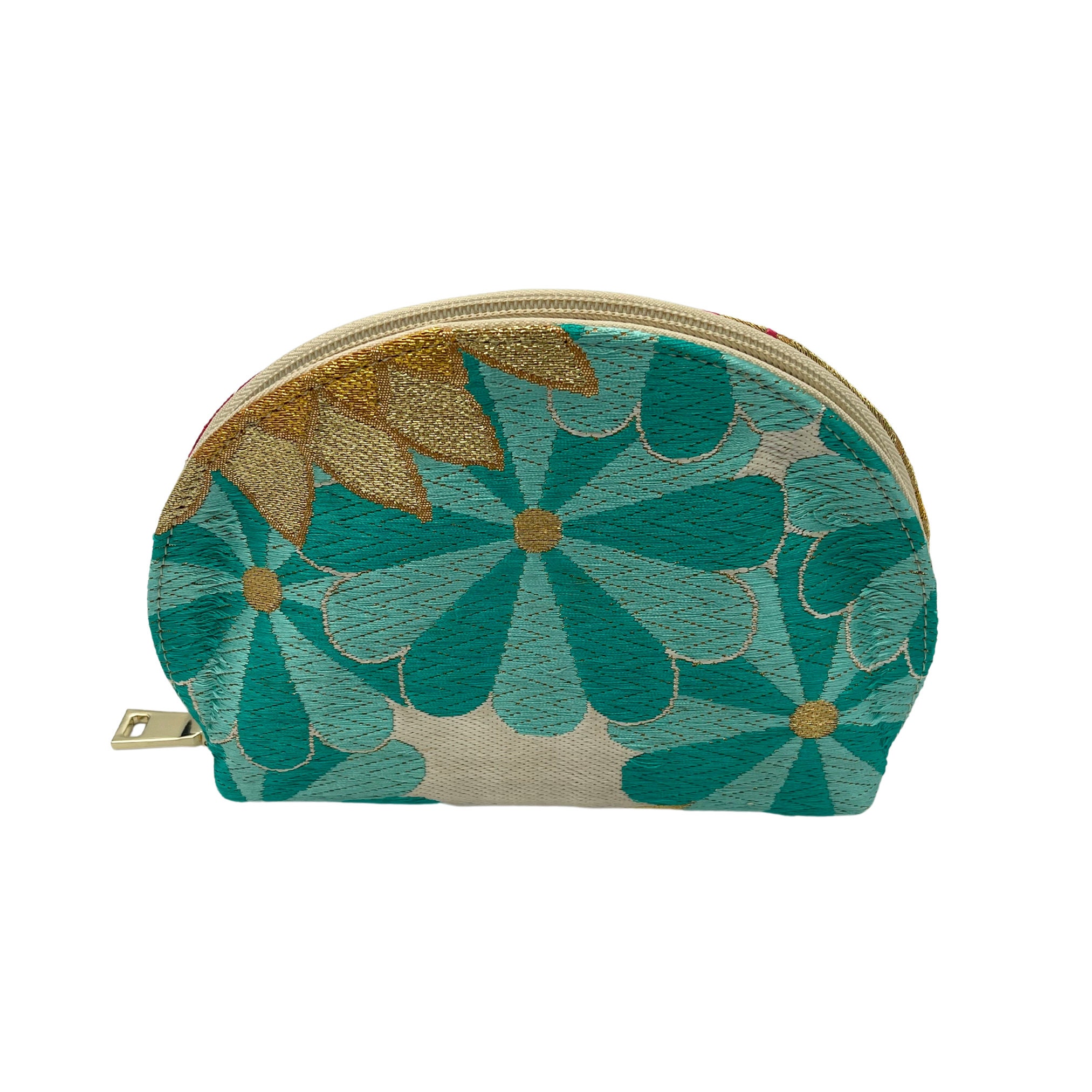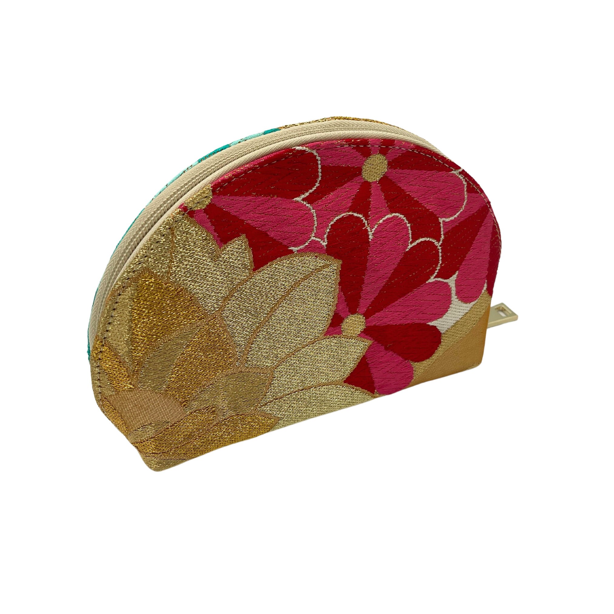 Add a pop of color and cultural flair to your daily routine with this vibrant gold, pink, and turquoise cosmetic pouch featuring the timeless KIKU floral pattern. Order yours now and make a statement with every use!