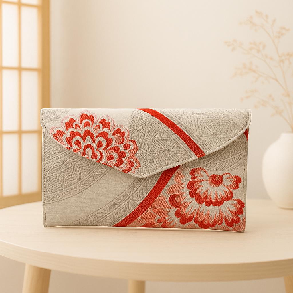 Introducing my exquisite handcrafted envelope clutch, meticulously crafted from vintage Japanese Fukuro Obi. This elegant clutch showcases the timeless beauty of the "Botan" flower, also known as the peony, a symbol of prosperity, honor, and bravery in Japanese culture. Each piece is made with love and care, reflecting the artistry and tradition of Japan.